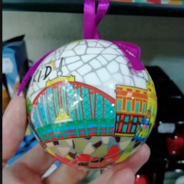 Bola de Navidad "monumentos de Madrid" para decorar el árbol de Navidad o llevar de regalo a un familiar, esta bola de PVC, lleva lazo para colgar.