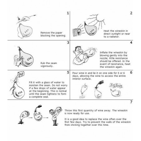 Bota de vino de Las Tres Z.Z.Z. fabricada con auténtica piel de cabra de primera calidad, limpia de manchas y cortes, curtida vegetalmente mediante un proceso artesanal con pez y tratada por impregnación es lo que la diferencia de la tradicional. Instrucciones de uso y cuidado en el interior. Forma curva, de color negro.