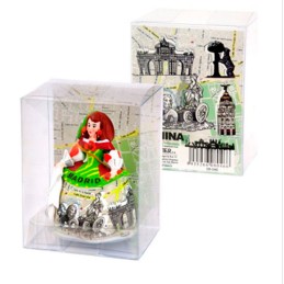 Menina Contemporánea "Madrid" hechas en resina y pintadas como homenaje a la ciudad de Madrid y con los monumentos más importantes y plano de calles, viene en estuche de plástico para regalo o para eventos como recuerdo. Medida: 9 cm alto x 6 cm ancho