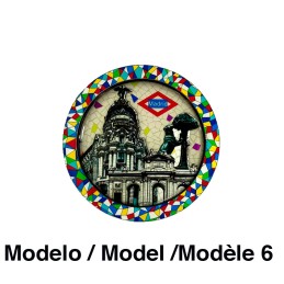 Selección de imanes de Madrid, con monumentos y escenas típicas de la capital de España. Hechos en resina y metal y goma de diferentes tamaños. En casi todos salen monumentos como: La Cibeles, Neptuno, El Oso y el madroño, la Puerta de Alcalá, el Palacio Real, las torres Kio, el skyline de Madrid, etc ...