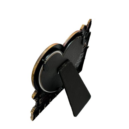Marco de fotos "Corazón Souvenirs de Madrid", marco de sobremesa de metal dorado y esmaltado en rojo con forma de corazón para poner una foto, lleva alrededor las siluetas de los monumentos de Madrid más emblemáticos, como Oso y el Madroño, La Cibeles, la Puerta de Alcalá, etc ... Souvenirs de Madrid.