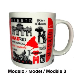 Grand choix de tasses en céramique avec des motifs de notre ville "Madrid", avec des monuments, d'autres images de la Chulapa et chulapo de Madrid, ou tout simplement le nom de Madrid. Ils sont parfaits pour le café, le thé, la soupe ou de la crème... Des cadeaux pour des événements, avec goût et à bon prix, Souvenirs de Madrid. Capacité 300 ml, passe au lave-vaisselle et au micro-ondes, usage alimentaire.