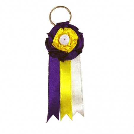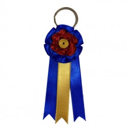 Devise ou cocardes de toro, fait á main avec rubans de satin entrelacés et prêts à être porte-clés. Exclusif par ZiNGS. Cadeau ideal pour clubs taurins et rancher.