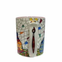 Tasse "Las Meninas de Velázquez modèle Trencadis", nous avons quatre modèles qui changent à l'intérieur de la couleur unie bleu, orange, rouge et vert. Passe au lave-vaisselle et au micro-ondes, usage alimentaire. Capacité 300 ml.