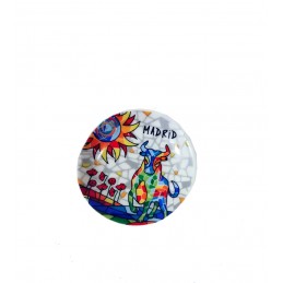 Aimant ou Magnet de réfrigérateur "Toro Mosaic" en résine, en deux tailles et modèles, rond en forme de soucoupe (6,5 cm de diamètre) et cuillère à café (8,5 cm de long), petite tasse (4cm). Avec la technique de trencadis, ces beaux aimants sont de Toro Mosaic. Fabriqué en Espagne