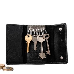 Leather keychain "Flag of Spain" six pendants for keys, closure with two buttons, in two colors blue and black. Ubrique leather made in Spain.