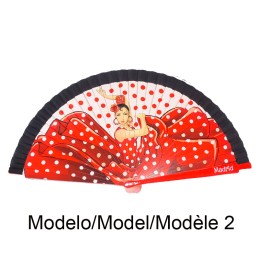Nicely fans decorated with typical scenes of Spain (flamenco dancers, bullfighters, etc.) and finished with lace. Available in three colors: white and brown the small size (13 cm large), white, beige and black in the medium size (9.4'' long) and black and white in large (11.7'' long). Made in plastic and lace.If you want to protect your fan, you can buy a...