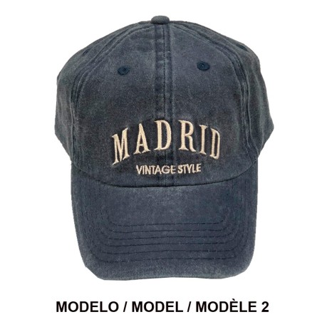 Two-tone Madrid visor cap, unisex cap, adjustable to any head size, it has two colors on the visor combined with the head, Madrid inscription and with a worn look.