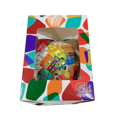 Christmas ball for the tree "Meninas trencadis", to decorate the Christmas tree or remove it as a treat to a familiar, this PVC bola, lleva lazo to colgar. Come in a cardboard box to protect it. Madrid souvenirs. Diameter: 7.5 cm